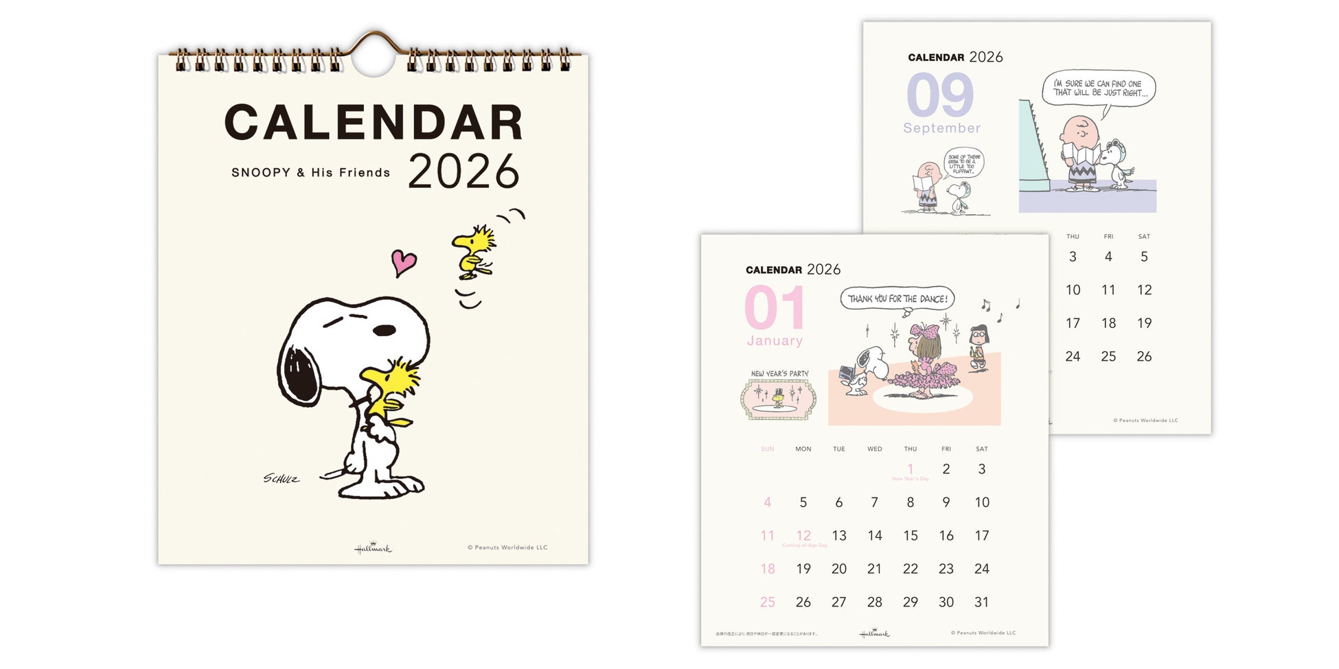 株式会社日本ホールマーク(本社・東京都港区芝)は 2025年8月4日(月)にPeanuts™デザインの2026年版カレンダーとダイアリー(スケジュール帳)を発売いたします。