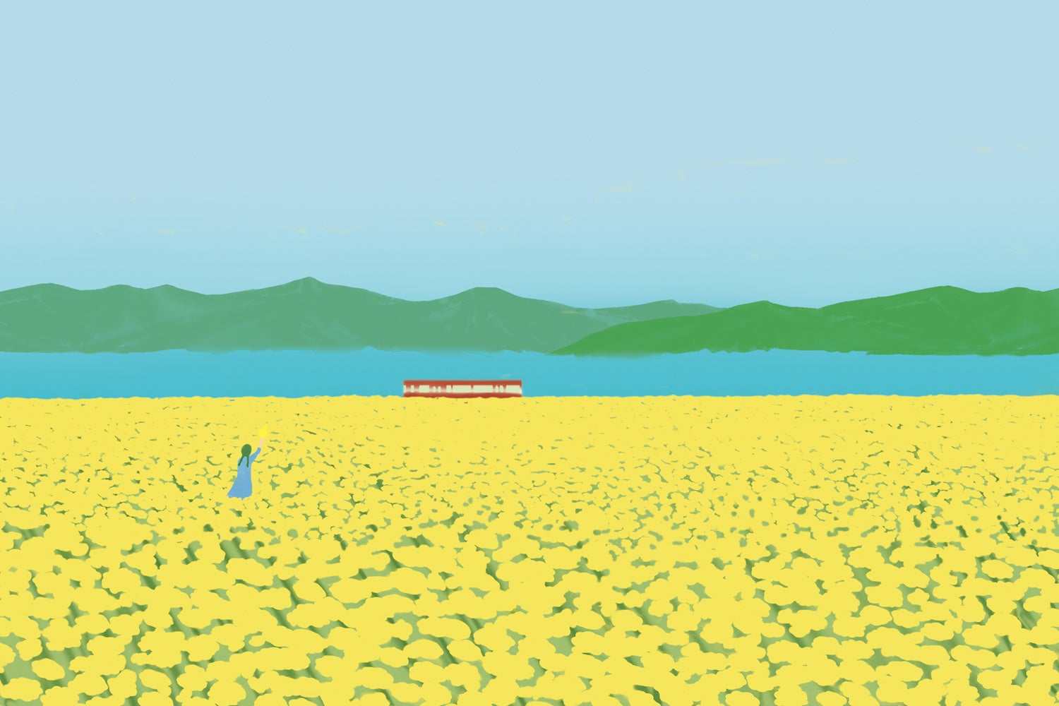 卒業、別れ、旅立ち、初恋。誰の胸の内にもある思い出のシーンを咲き乱れる花々の中にそっと添えることで、「在りし日」を思い出にしてキュンとしてもらえたら嬉しいです。(いえだゆきな氏)