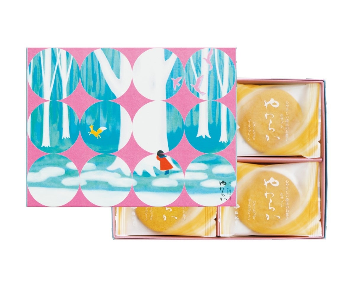 「子どもの頃、愛犬と近所の森でよくかくれんぼをして遊んでいました。木陰に隠れて息をひそめ、一生懸命探す足音を聞いて…。」そんな童心の思い出を秋冬のパッケージデザインにしました。どこか懐かしい味わいのやわらかと、さっちゃんとキツネのkikkiのお茶目なやりとりであたたかい気持ちになる作品です。(いえだゆきな氏)