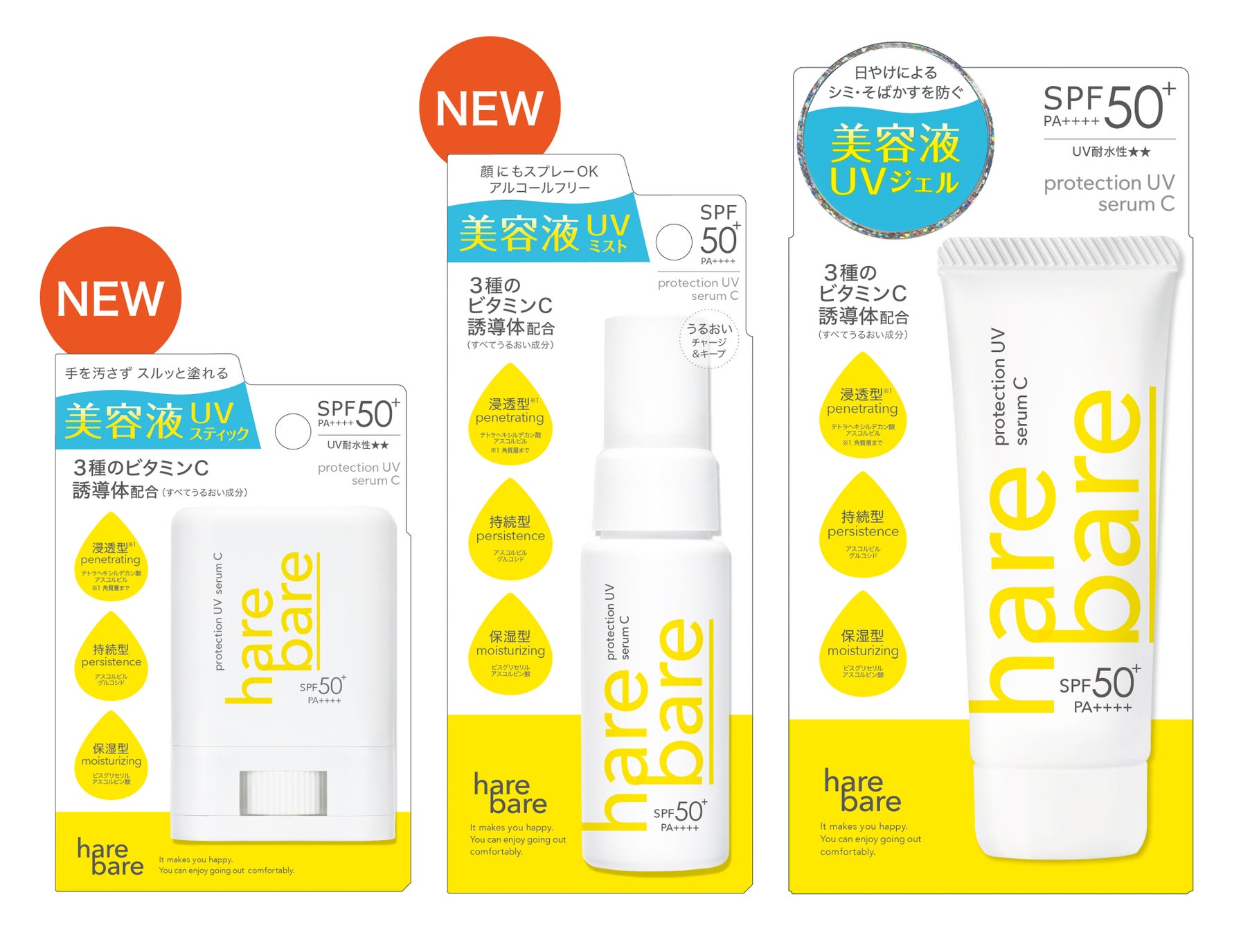 昨年発売し大変ご好評をいただいた「ハレバレ プロテクションUV セラム C」を含めた3品で