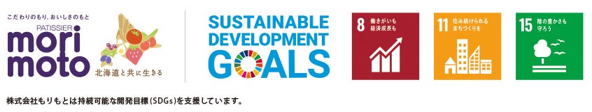 *持続可能なスイーツのこと。もりもとでは、その地域ならではの素材を生産者様と一緒に守り、スイーツにすることで付加価値を高め素材の需要拡大に取り組み「持続可能な地域社会」の実現を目指しています。
