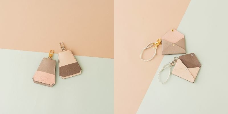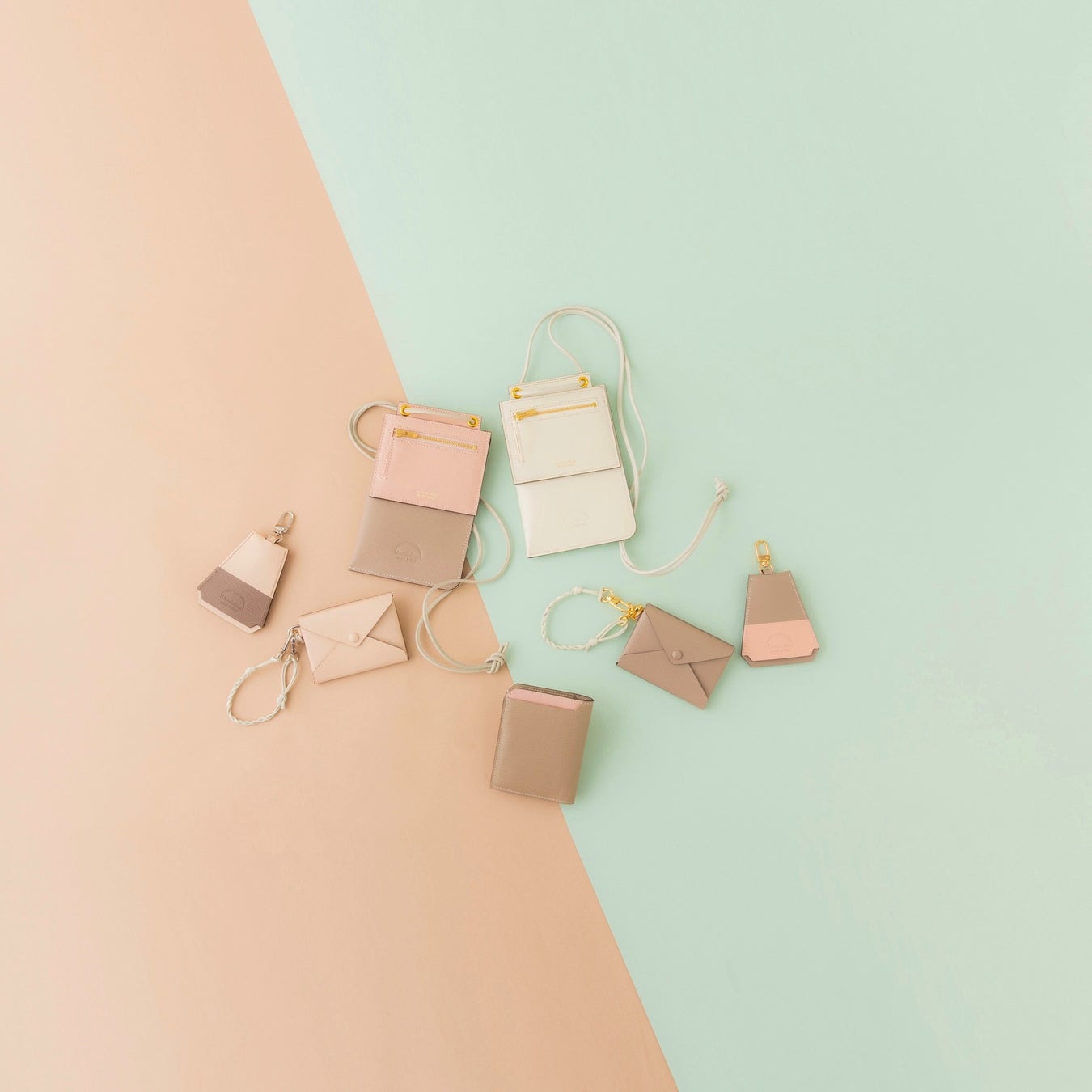新型はともにバッグのアクセサリーとしてもお洒落に活用できますので、単品としてはもちろんのこと、2個使いして楽しんでいただくことも可能です。名刺入れ、キーチャームとしてご活用いただくことができ、ミニマルなサイズ感もオススメできるポイントです。