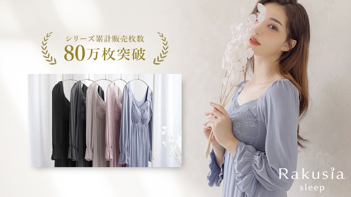 シリーズの累計販売枚数は80万枚を突破。新作のナイトブラワンピース長袖タイプは発売から3か月で既に販売枚数1万枚と好調を期す、tu-hacciで人気No.1のナイトブラ・ナイトブラ一体型ルームウェアシリーズです。