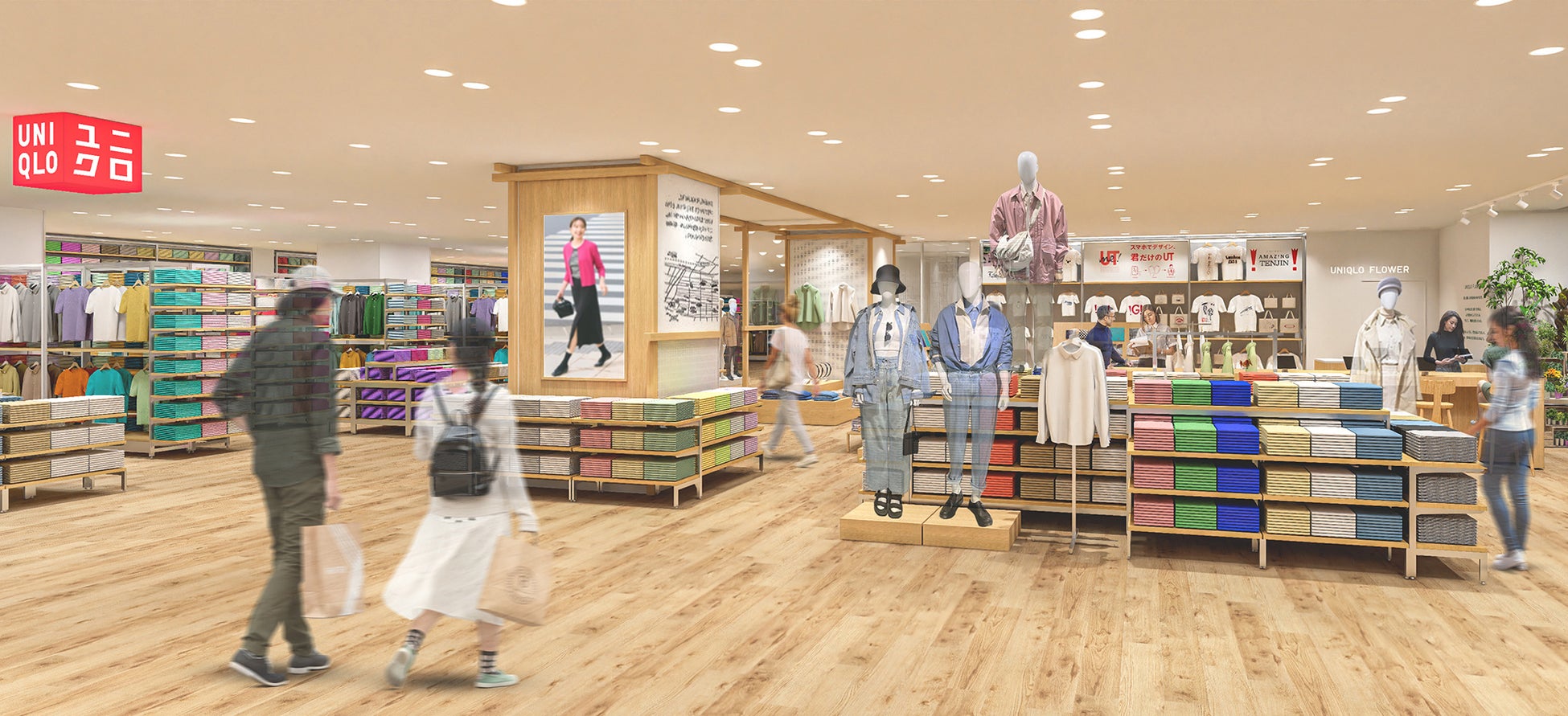 ユニクロは2023年4月28日(金)、福岡・天神エリアの商業施設「ミーナ天神」と「ノース天神」が一体化し、新たに開業する大型商業施設「ミーナ天神」に、売場面積約860坪、九州最大となる「ユニクロ 天神店」をオープンします。