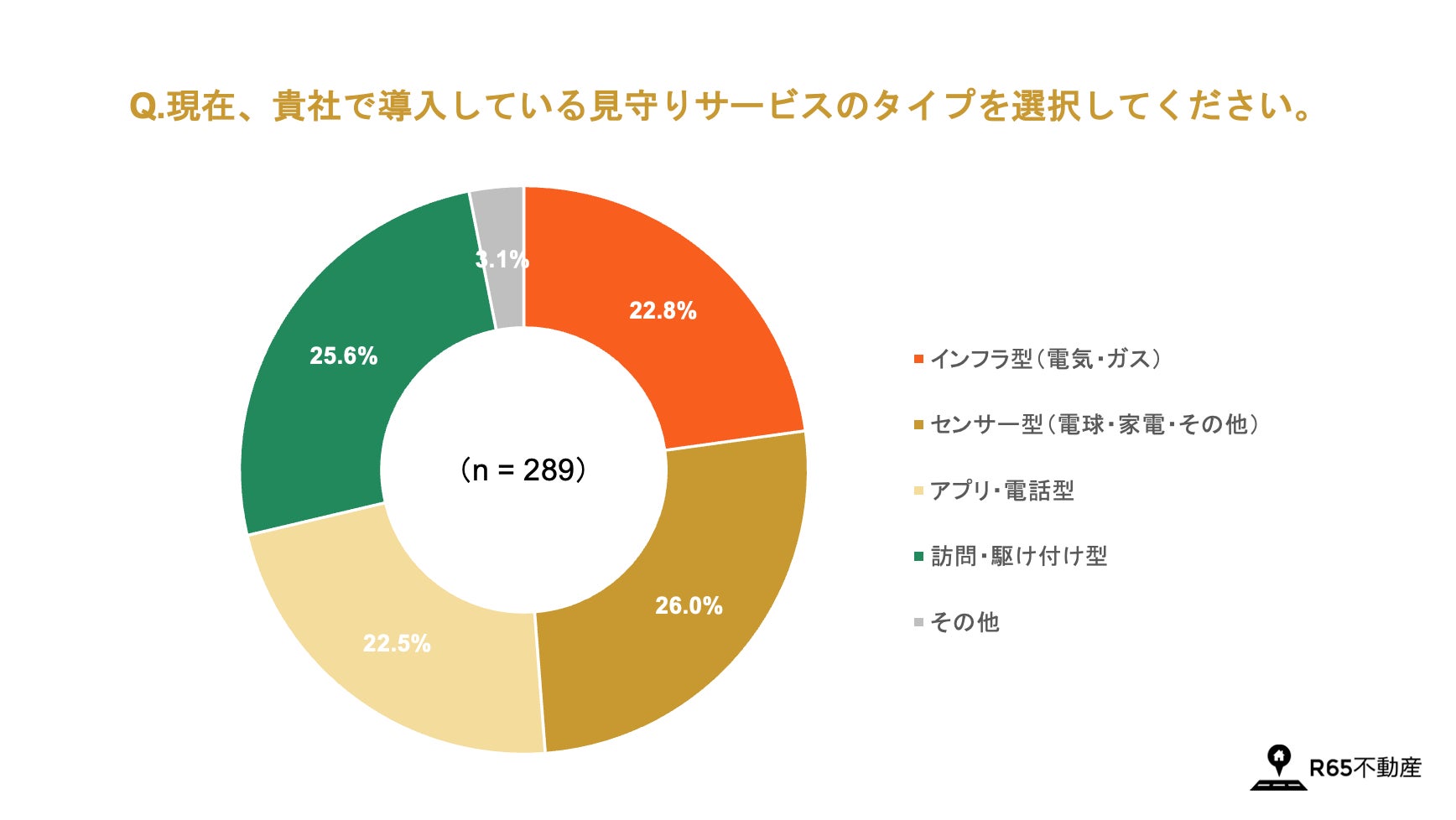 65歳からのお部屋探しを専門で支援する株式会社R65(本社:東京都港区、代表取締役社長:山本遼、以下「R65不動産」)は、全国の賃貸住宅の管理業務を行う不動産管理会社を対象に「高齢者向け見守りサービスの導入状況に関する実態調査」を実施いたしました。本調査では、高齢入居者の受け入れに関連する「見守りサービス」の導入状況や評価についてアンケートを行い、その実態を分析しました。