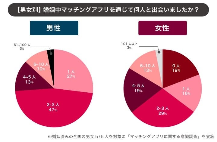 婚姻中マッチングアプリを通じて出会う人数は2~3名が半数
