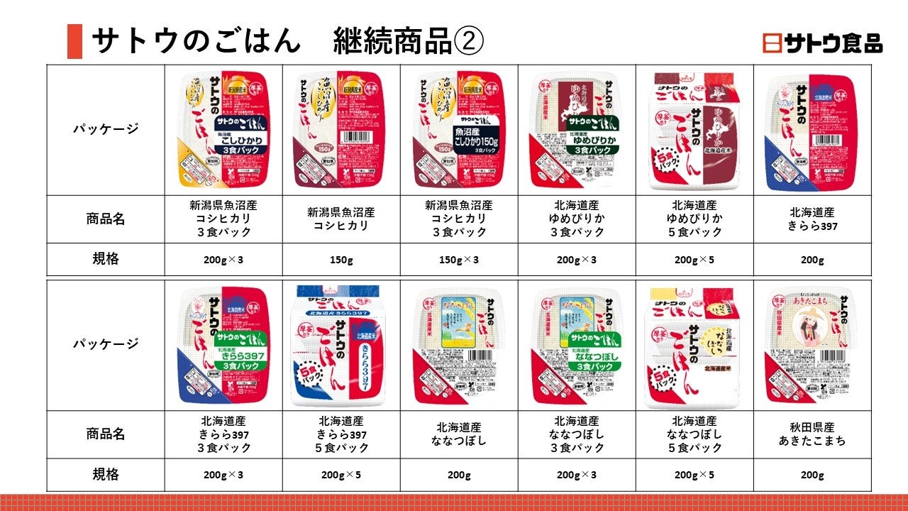 サトウ食品株式会社(以下、当社)は、生産効率化による主力品の供給強化に向け、パックごはんの一部商品を整理して、休売と終売のニュースリリースを 3 月 24 日に実施いたしました。