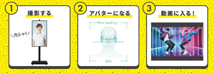 筐体の前に立つだけで、誰でも簡単にアバターになり、好きなアイドルや有名人との共演、秘境探検や歴史上の人物に扮するなど、多彩な世界を楽しむことができます。