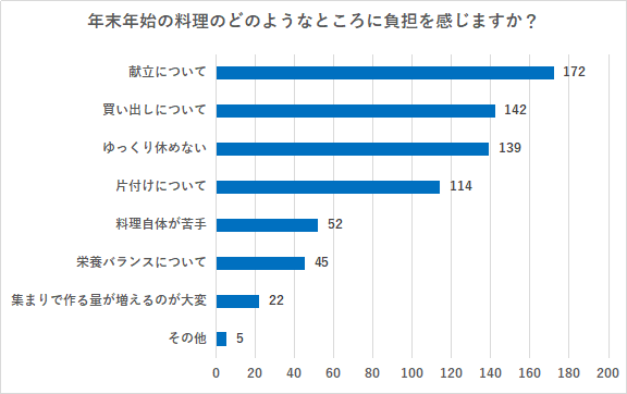 普段の生活と違い、長期休暇になる年末年始は献立を朝・昼・晩考える必要があり、それを負担に思う方が多いようです。