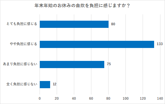 先ほどのアンケート結果で年末年始は自炊をする方が多い傾向にありましたが、実際はそれを負担に感じている方が多い傾向にありました。