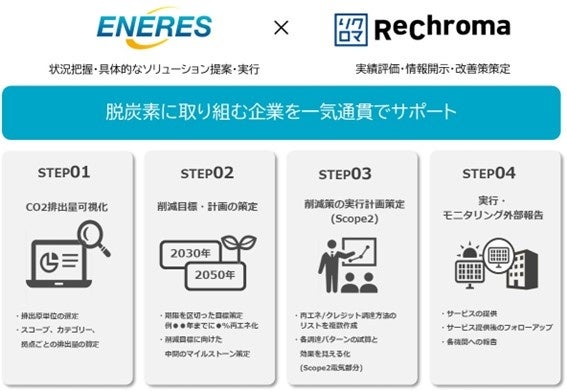 株式会社エナリス(本社:東京都千代田区、代表取締役社長:都築実宏、以下「エナリス」)とリクロマ株式会社(本社:東京都渋谷区、代表取締役:加藤貴⼤、以下「リクロマ」)は、企業の脱炭素推進活動の「Plan・Do・Check・Action」のすべてのフェーズを一気通貫でサポートすることを目的に協業を開始します。
