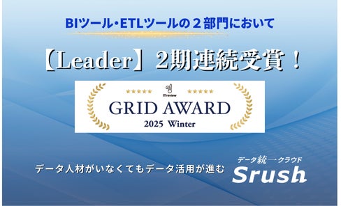 データ統一クラウド「Srush」、「ITreview Grid Award 2025 Winter」の2部門(BI ツール/ETLツール)において【Leader】を2期連続受賞