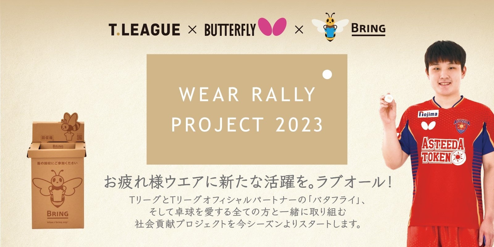 バタフライとTリーグが共同でウエアリサイクル活動「WEAR RALLY PROJECT 2023」を実施