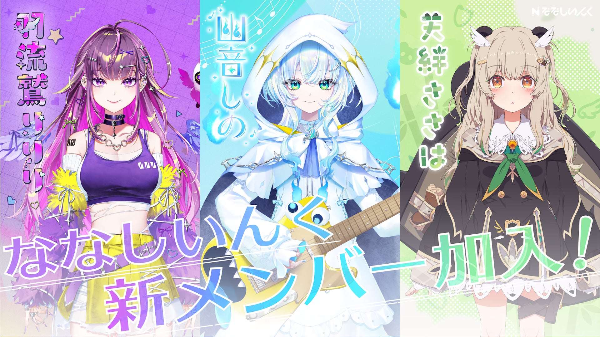 【ななしいんく】新人タレントの天絆ささは・幽音しの・羽流鷲りりり 3名がデビュー!初配信は2025年4月27日(日)20:00〜【VTuberプロダクション】