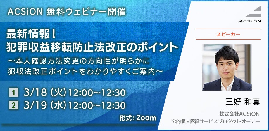 【3/18、19開催 無料ウェビナー】最新情報! 犯罪収益移転防止法改正のポイント