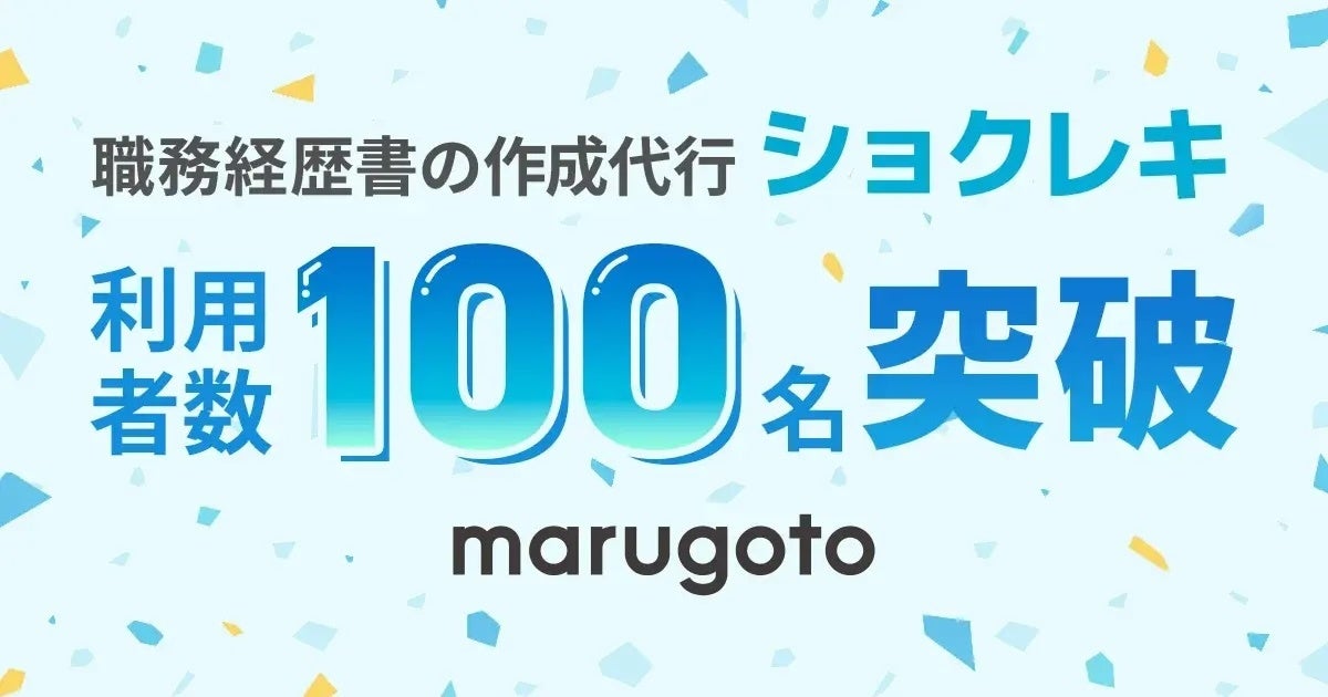 マルゴト株式会社(北海道札幌市・代表取締役 今 啓亮・以下マルゴト)は、職務経歴書作成代行サービス「ショクレキ」の利用者が100名を突破したことをお知らせいたします。求職者の負担を軽減し、効果的な職務経歴書作成をサポートする本サービスが、多くの方にご利用いただいております。
