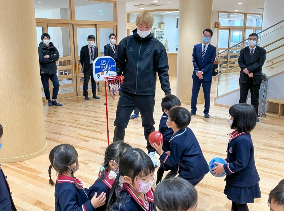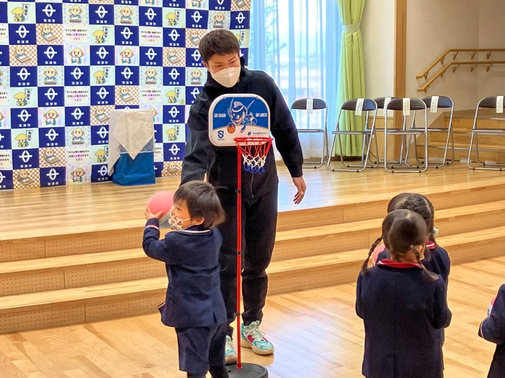 滋賀レイクスでは今後も、県内の幼稚園・保育園・こども園などに幼児用バスケットゴールを贈る活動を推進してまいります。