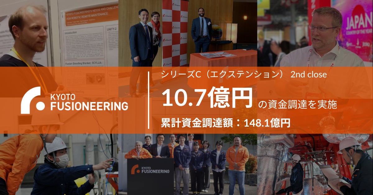 京都フュージョニアリング株式会社は、シリーズCラウンド(エクステンション)において、今年4月の資金調達(1st close)に続き、新たにアメリカのベンチャーキャピタルのIn-Q-Tel(インキュテル:IQT)、ニチコン株式会社、丸紅株式会社を含む計4者を引受先として総額10.7億円の資金調達を実施しました。この2nd closeによりシリーズCの累計調達額は131.3億円に、当社の累計資金調達額は148.1億円となりました。