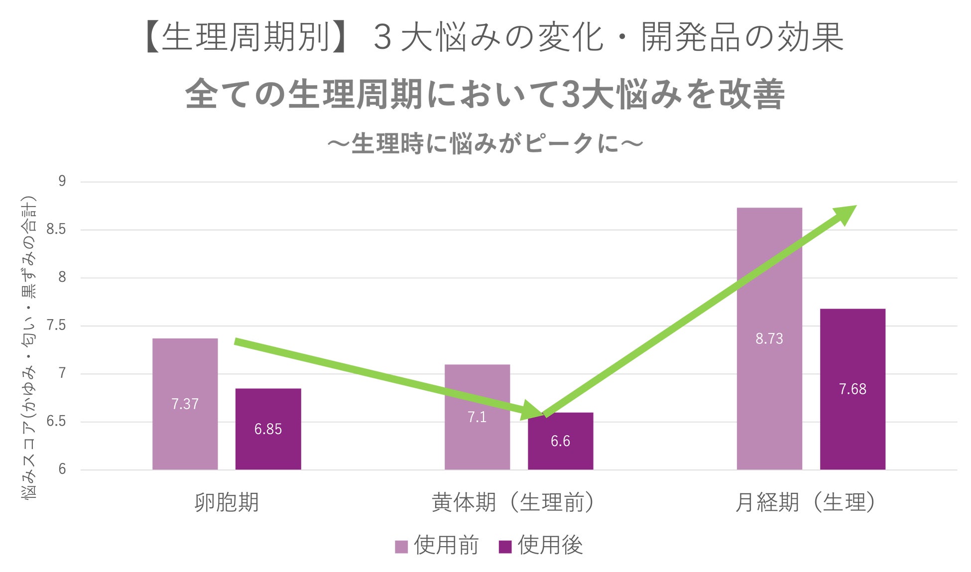 3大悩みの周期変化と製品による軽減効果