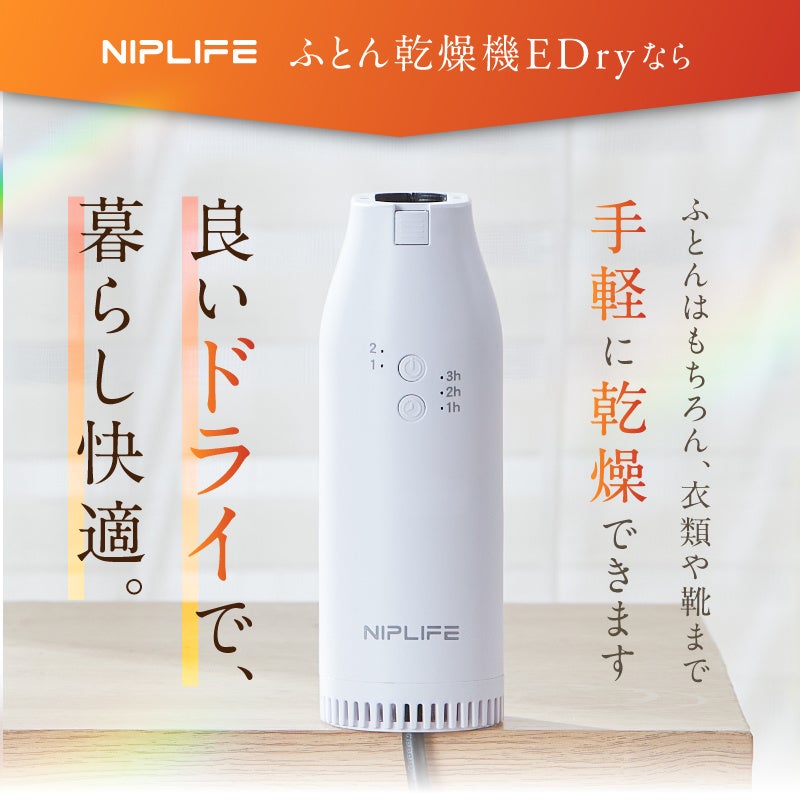 株式会社日創プラス(本社:福岡県福岡市、代表取締役:孟一蘇)は、生活雑貨ブランド『NIPLIFE』シリーズから、マルチミニ乾燥機「ふとん乾燥機EDry」を販売開始しました。
