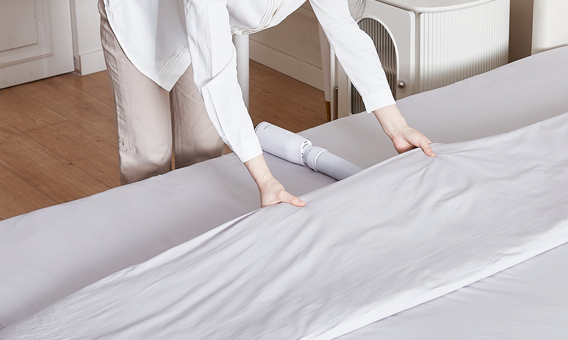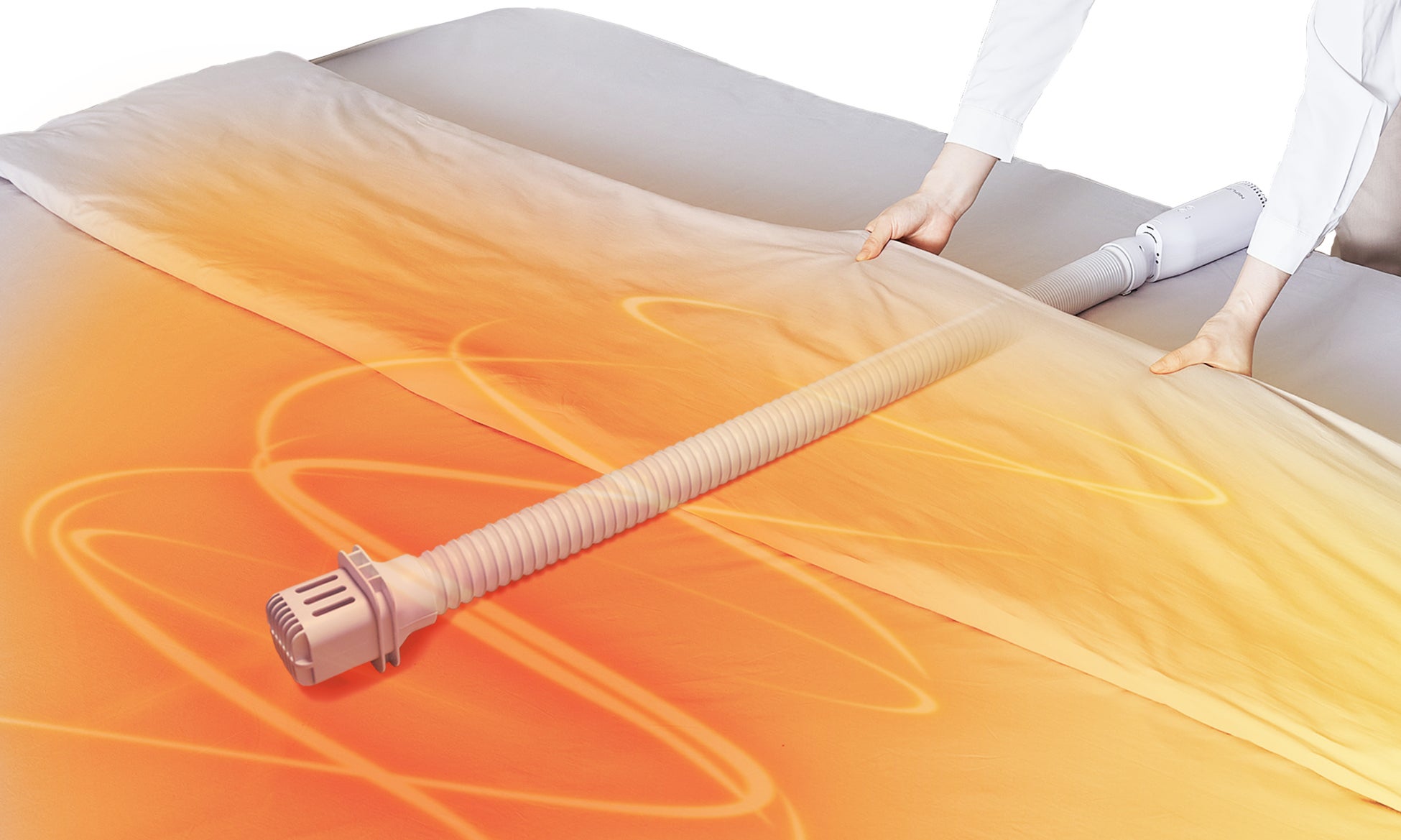 最大約103cmまでホースが伸びるので、ふとんの奥から全体へ温風を届かせることができ、夏はカラっと冬はあたたかいふとんに仕上げます。