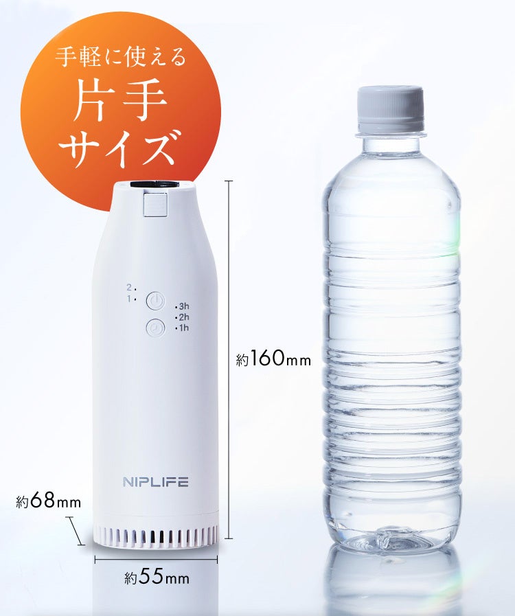 数々の試行と改善を重ねた末、500mℓのペットボトルよりも小型で持ちやすい乾燥機を開発しました。