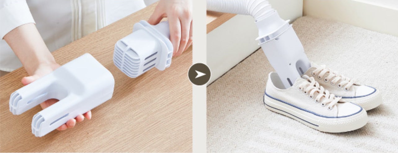 付属の靴用ヘッドをホースに取り付け、靴にヘッドを入れるだけの簡単セッティング。もう湿った靴を履いた時の不快感を感じることもありません。