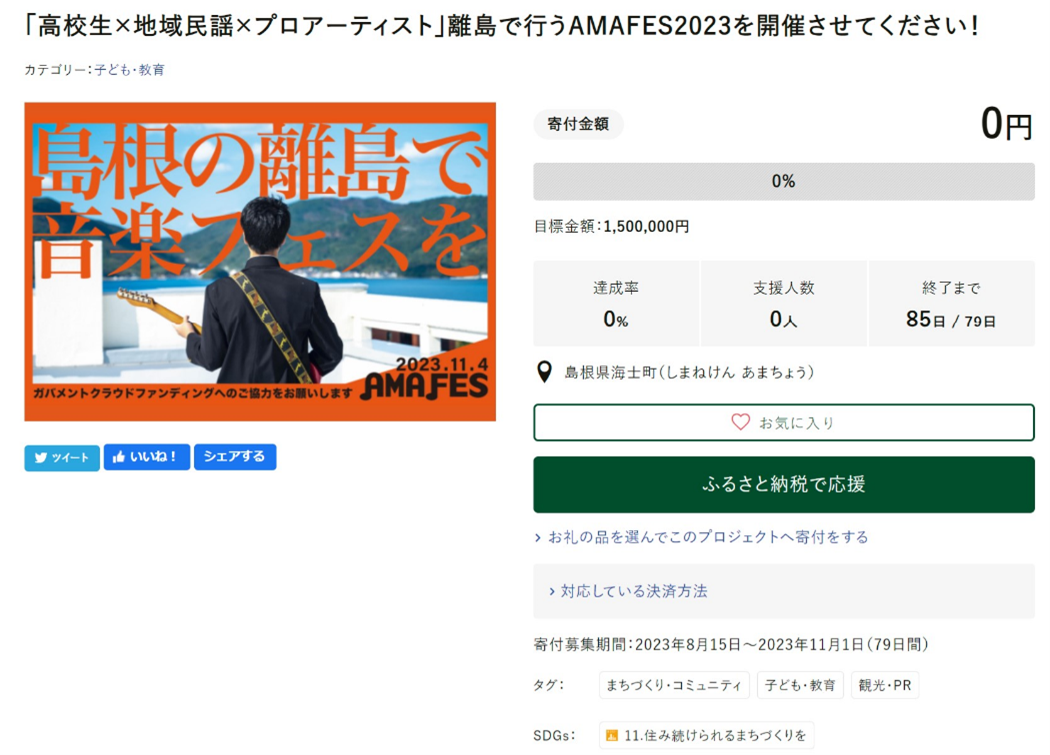 島根県海士町とふるさとチョイス、ふるさと納税制度を活用したガバメントクラウドファンディング®で、隠岐島前高等学校の生徒が発起人の音楽フェス「AMA FES2023」運営費調達のためのプロジェクトを開始