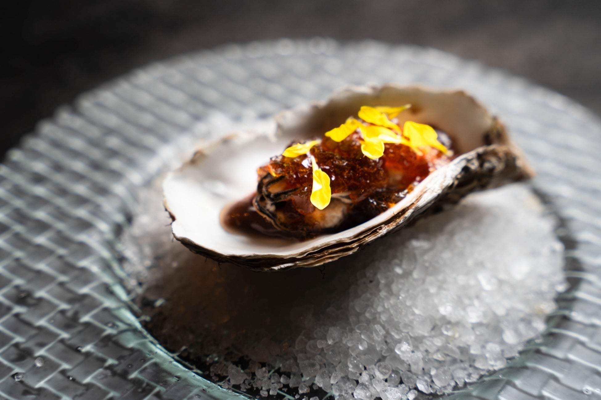 肉厚な北海道産の牡蠣に今が旬の無花果のソースをトッピングしています。