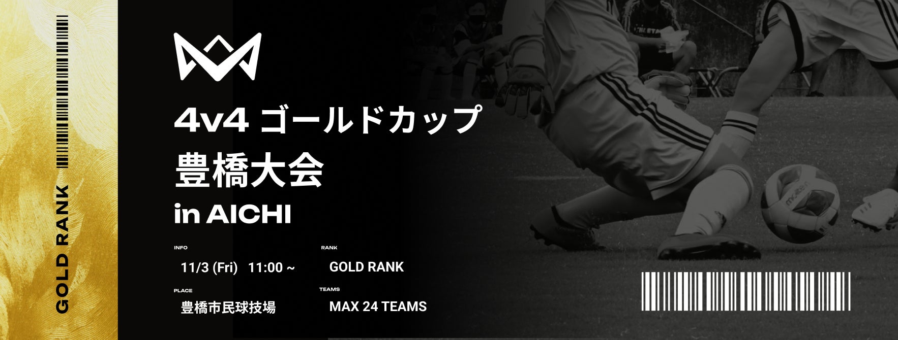 エントリー即満枠。サッカー界の本田圭佑が考案【4v4】のゴールドランク大会を、11月3日(金・祝)に愛知県・豊橋市民球技場にて開催。