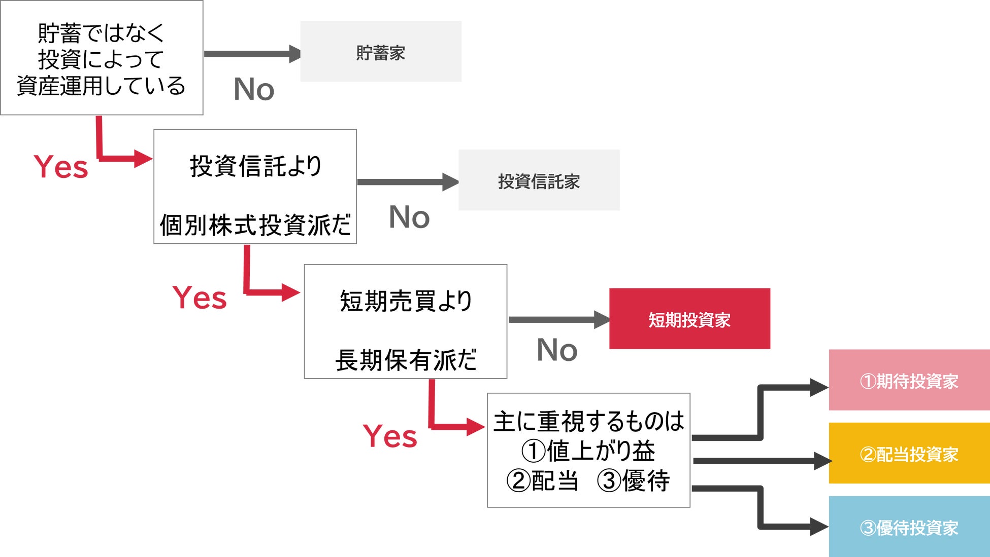 (主に個別株に投資し、3年以上の長期的な売買・特に優待を重視した投資家)