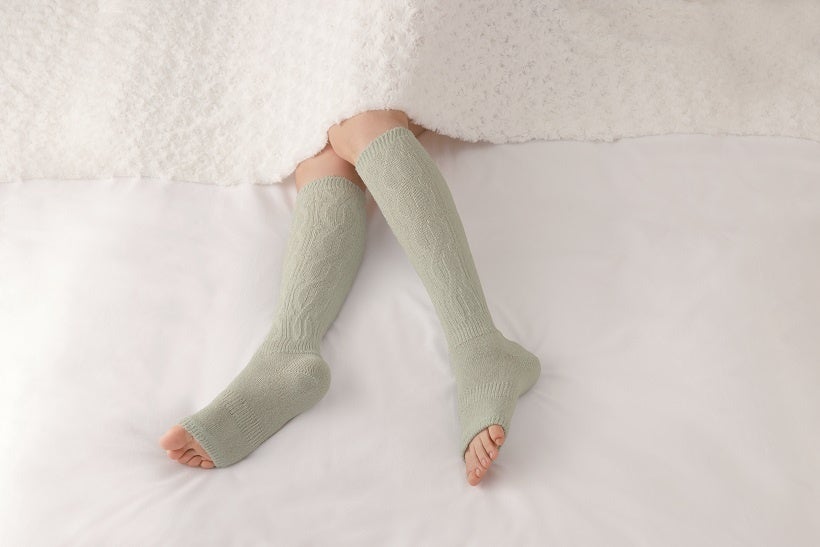 つま先が開いているので熱や汗が放散され、ムレによる冷えを防ぎ、快適にお使いいただけます。
