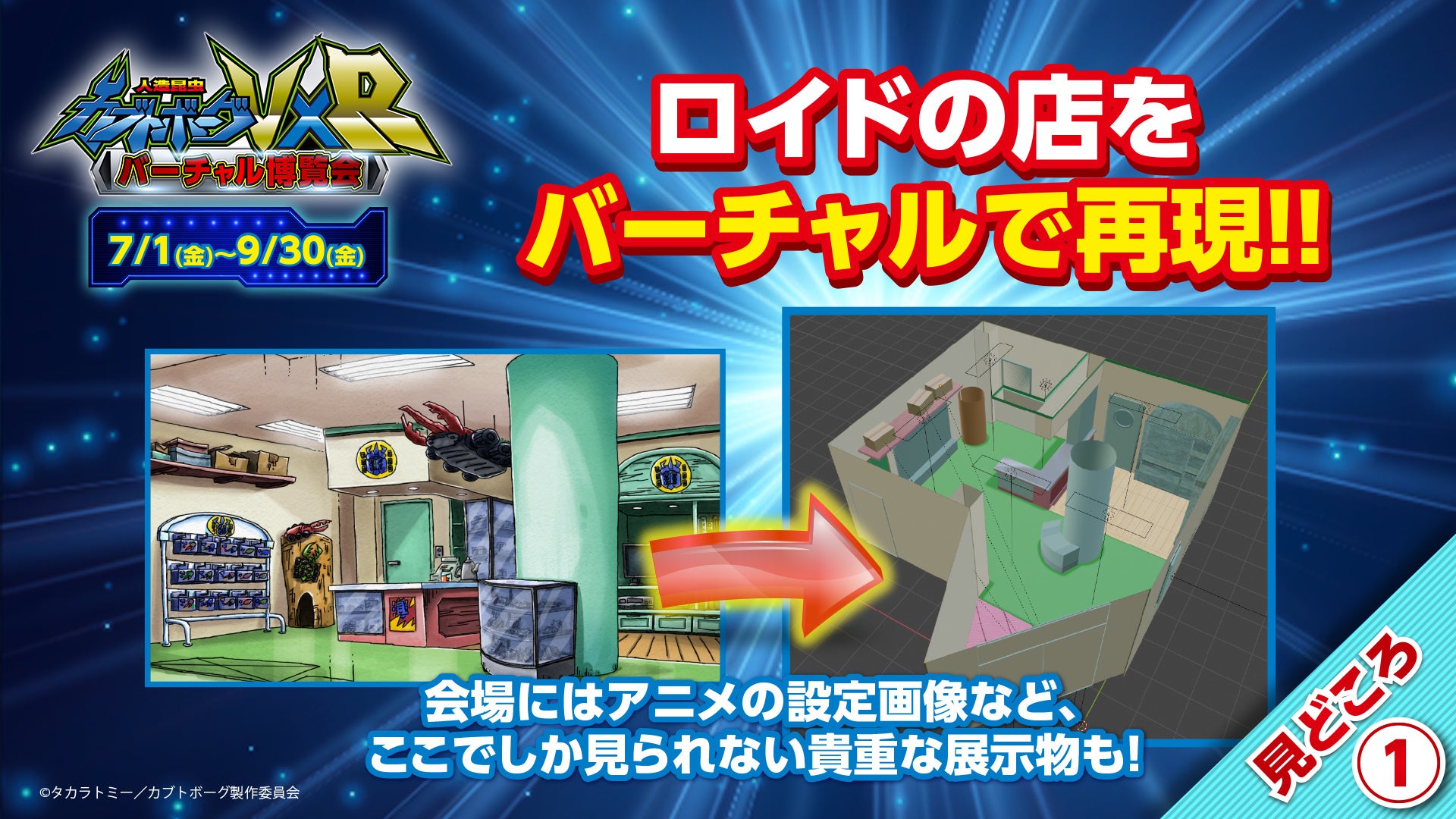 『人造昆虫カブトボーグVxV バーチャル博覧会』はソーシャルVR『DOOR』で行われるバーチャル展示会です。スマートフォンやパソコンなどの端末からTVアニメ「人造昆虫カブトボーグ V×V」の世界をバーチャルで楽しむことができます。