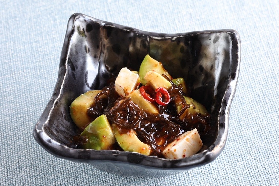 今回、新たに発売する「もずくキムチ」は、独自の製法でシャキシャキ食感を実現した、沖縄県産のもずくを贅沢に使用。魚介の旨味が効いた本格キムチだれに、辛さのアクセントとしてカイエンペッパー(輪切り唐辛子)を加えた「すっぱくないもずく」となっています。