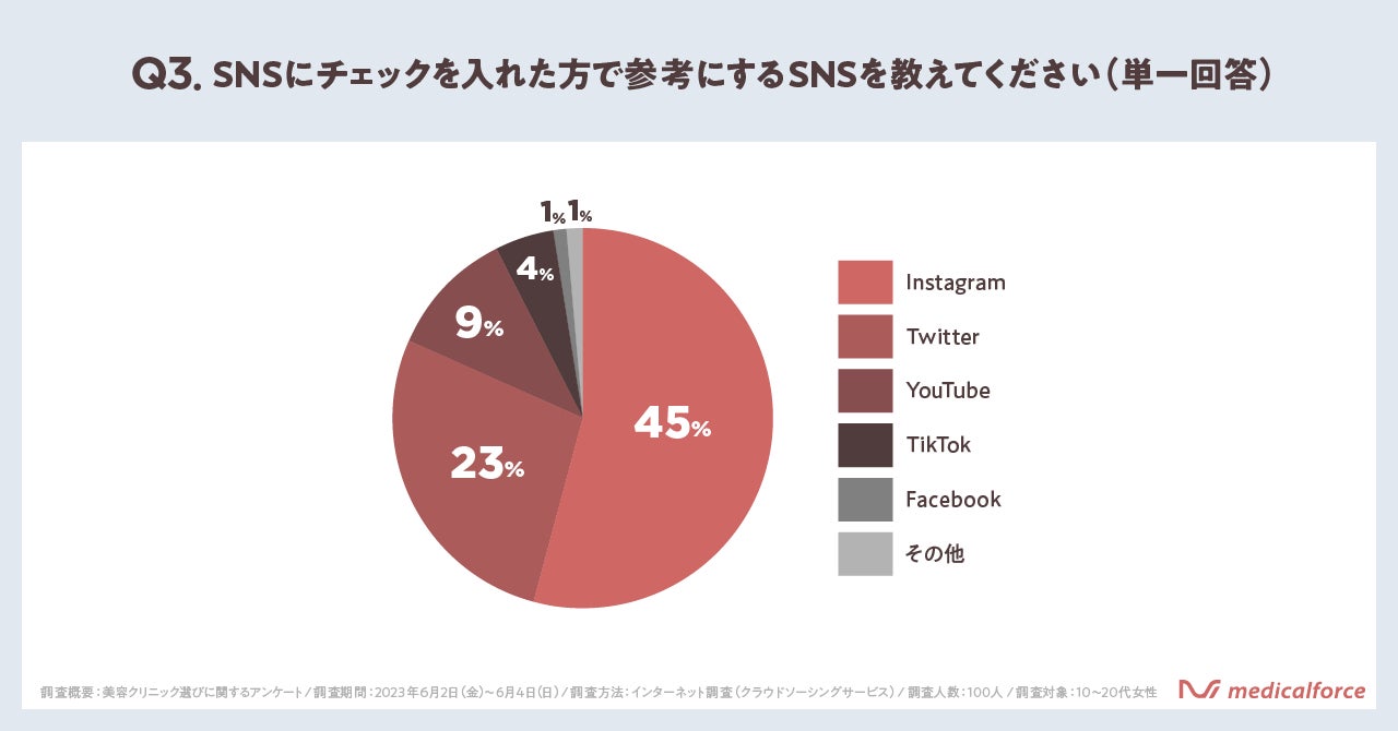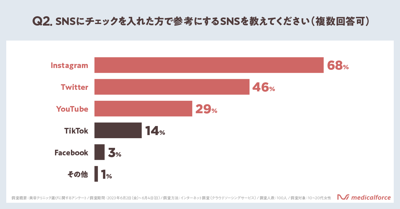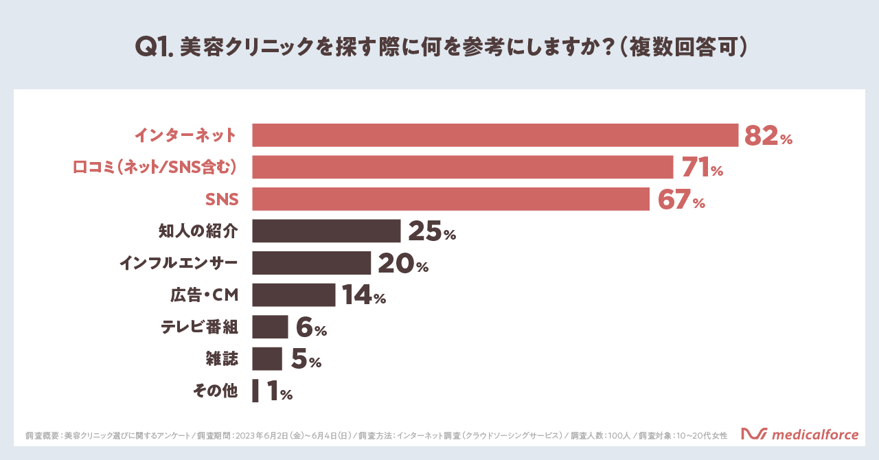 そこで株式会社メディカルフォースは、美容クリニック選びに関するアンケートを実施し、どういったSNSや企画などをクリニック選びの参考にしているのかの調査を実施しました。