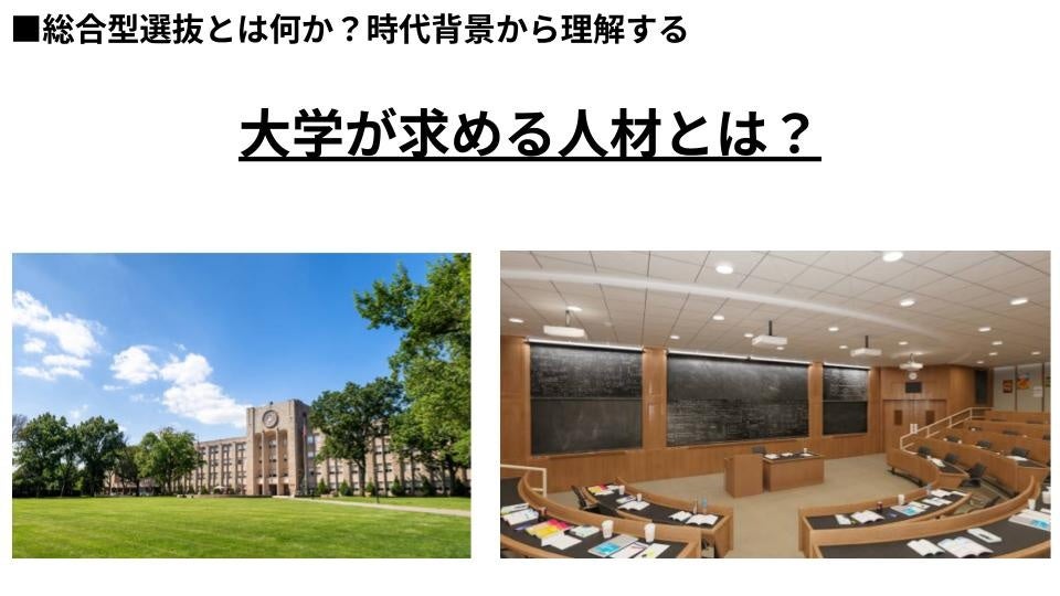 現在、大学入試の定員の過半数が、学力試験のみの一般選抜から「総合型選抜・学校推薦型選抜(年内入試)」へと移行しています。これに伴い、生徒自身の主体性やビジョン、論理的表現力が問われるようになりました。