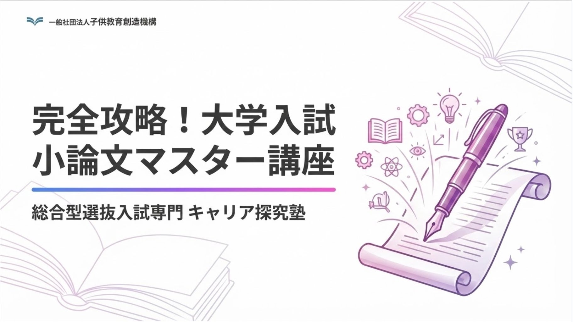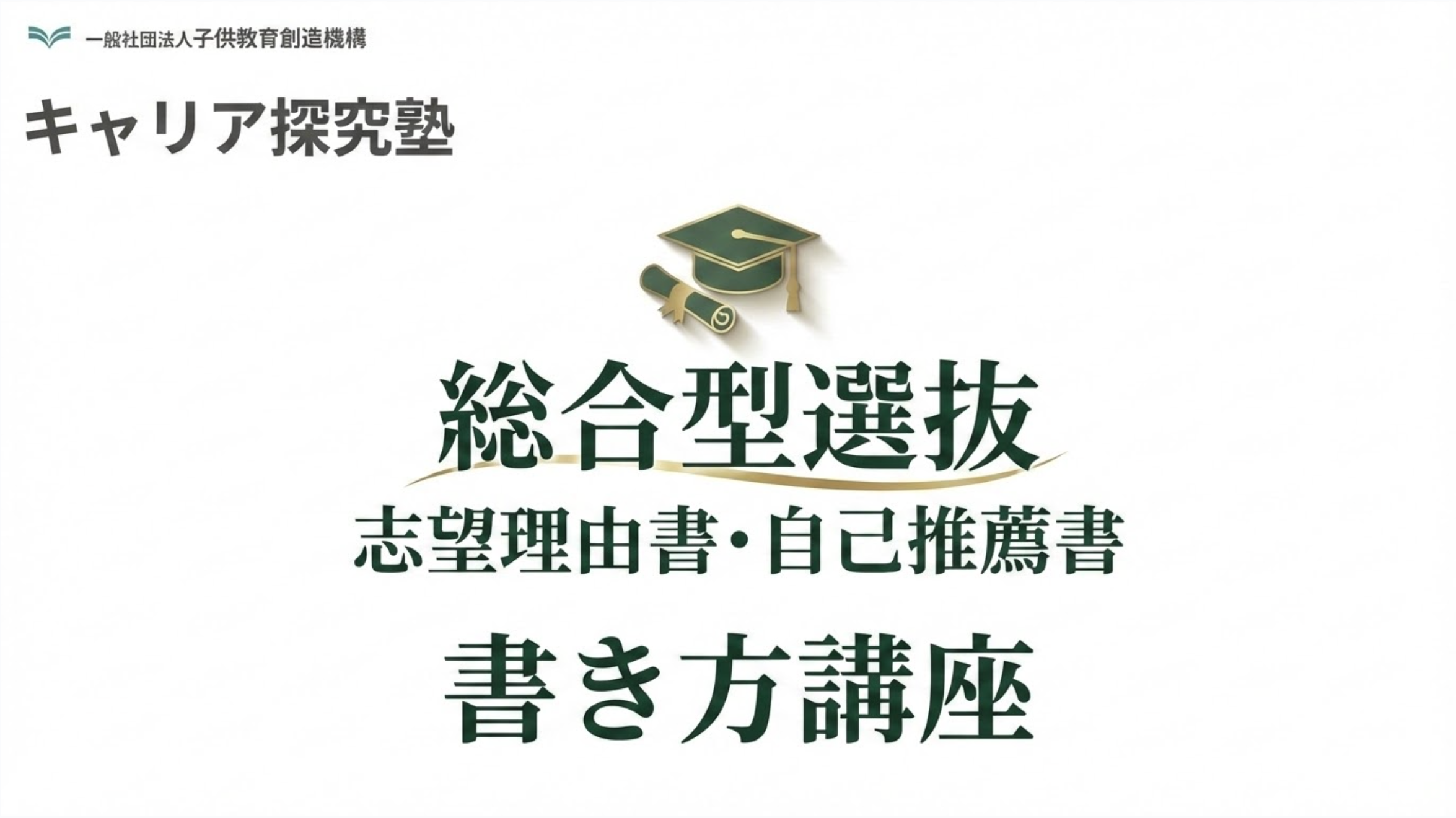 一般社団法人子供教育創造機構(所在地:東京都中央区、代表理事:森 博樹)は、運営する「大学入試総合型選抜対策 キャリア探究塾」において、2026年1月20日より、場所や時間を問わず受講可能なeラーニングサービスの提供を開始いたしました。
