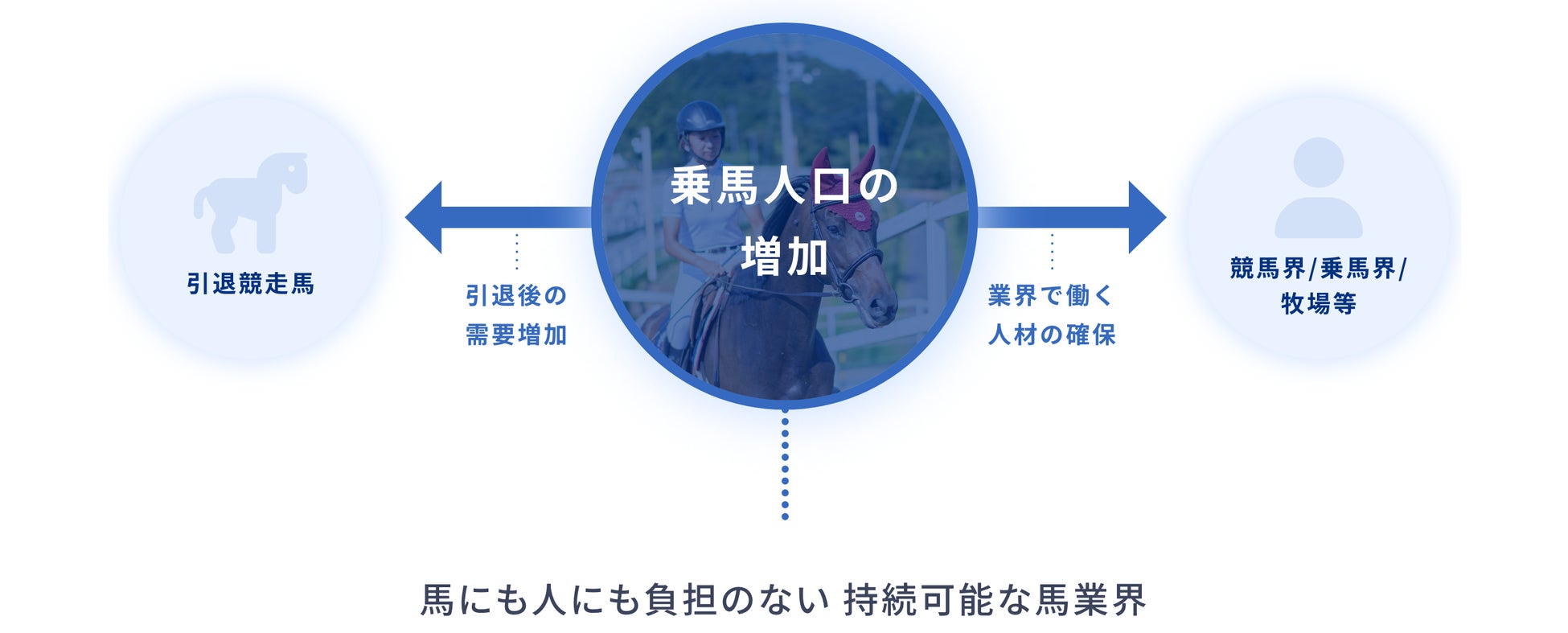 日本乗馬普及協会では乗馬の普及活動のほか、引退競走馬のセカンドキャリア支援も行っています。現在、日本乗馬普及協会では競馬を引退したサラブレッドが"乗用馬"として持続的に活躍できるようにリトレーニング等の継続的な支援を行っています。
