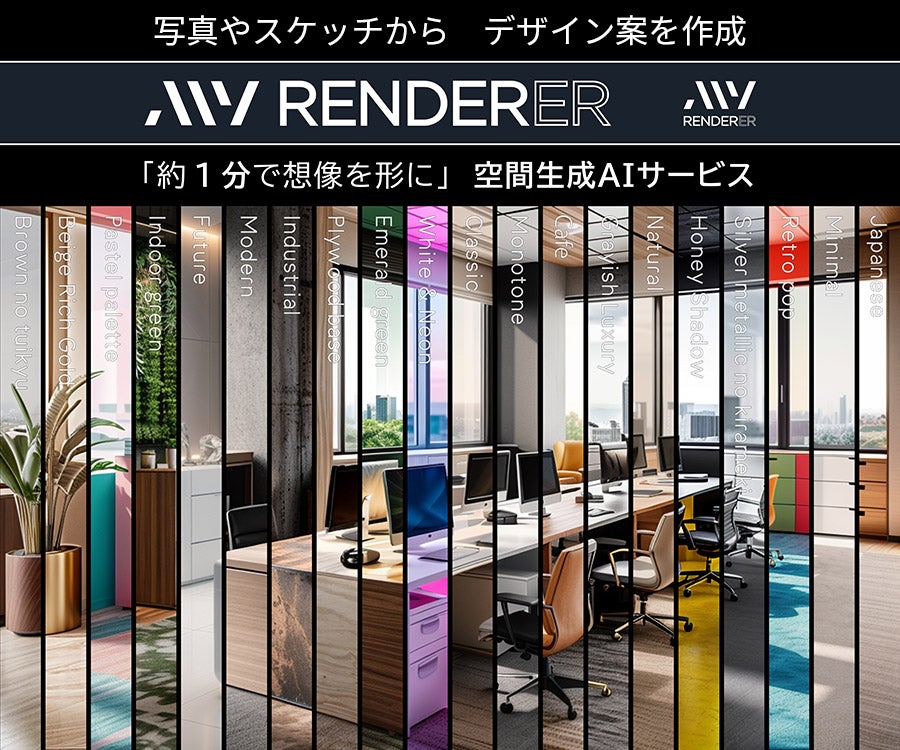 「MyRenderer」と「CGBank」は、建築や内装の設計業務をサポートするために開発されたサービスであり、主に設計業務の初期段階におけるアイデア出しを促進するサービスです。