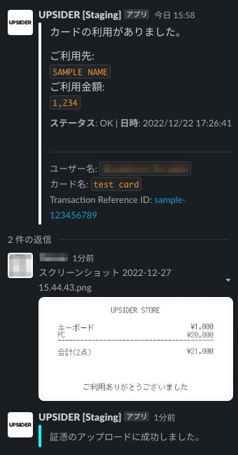 2.決済に対する証憑を、Slackからアップロードできるようになります。
