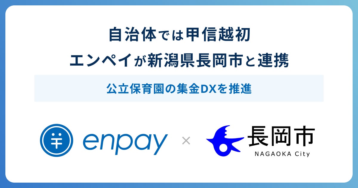 集金業務のキャッシュレス化・DX化を実現するFintech×SaaSプラットフォーム『enpay(エンペイ)』を提供する株式会社エンペイ(本社:東京都港区、代表取締役:森脇 潤一)は、2024年4月より新潟県長岡市が運営する公立保育園など31施設にエンペイが導入されたことを発表いたします。甲信越地方での自治体では、エンペイの初導入となります。