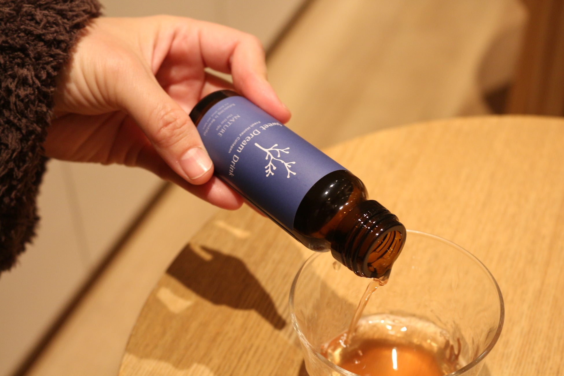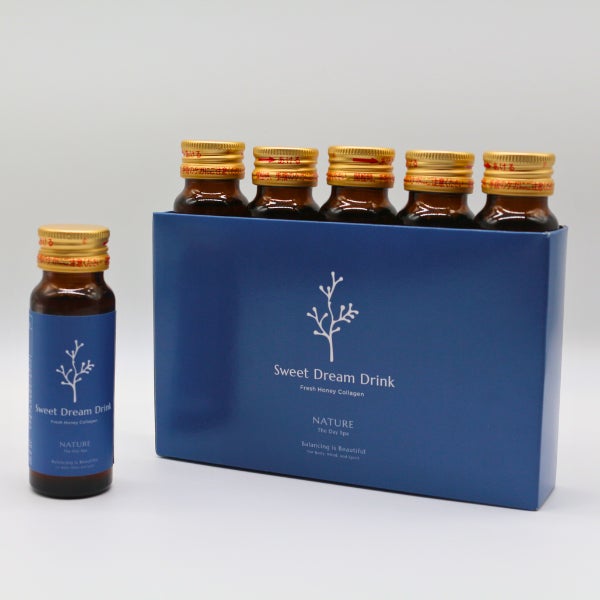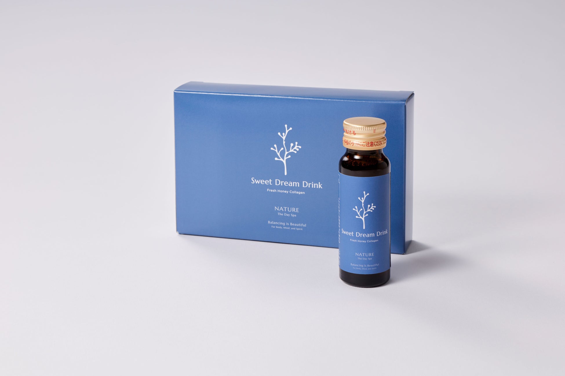 また、“良質な睡眠”だけでなく、スパにお越しいただく美意識の高いお客様にもご満足いただけるような、美肌へのこだわりも詰め込みました。25歳を超えると体内での生成が減少傾向へ向かう、美肌には欠かせないコラーゲンを補給していただけるよう、コラーゲンペプチドをたっぷり5,000mg配合しています。そんなコラーゲンペプチドをはじめとした、豊富な美容エキスが肌の輝きへもアプローチいたします。コラーゲン スイートドリームドリンクとともに、みなさまの日常がより豊かで、充実したものになりますように。製品を手に取る方への願いを込めて、お届けします。