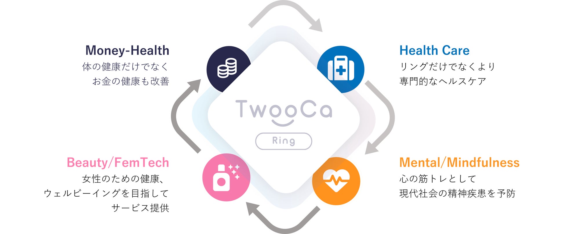 2023年9月にVisaのタッチ決済に対応した健康管理機能付きリング型ウェアラブルデバイス「TwooCa Ring」を発表いたしました。様々な業種業態の企業様に導入いただき、多くの反響をいただいております。