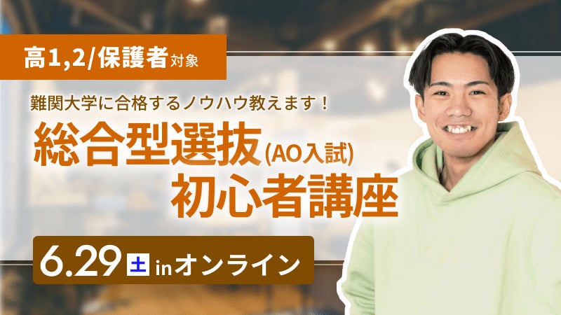 内容:総合型選抜の受験を考えているものの、総合型選抜についてまだあまり知らない人に向けて、受験方式の全体像だけでなく、まずやるべきことなどを詳細にお伝えします。