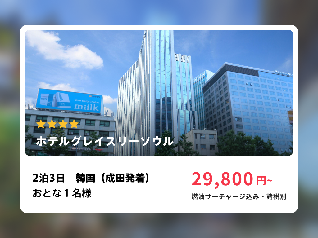コロナ禍で、新たな「韓国エンタメ」の魅力に出会った方も多いはず。そんな韓国への旅行の復活を祝して「すぐに行ける」おトクなツアー販売を実現させることになりました。パッケージツアーならではの安心のフルサポートで、久しぶりの韓国へ旅立ちませんか?