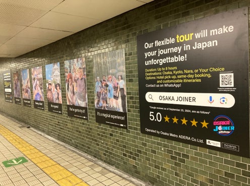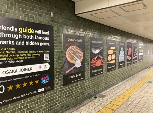 株式会社 ⼤阪メトロ アドエラ(本社:大阪府大阪市、代表取締役社長 大矢雅士)は、11⽉27⽇(水)よりOsaka Metro本町駅の中央線と四つ橋線の連絡通路にて、弊社の新規事業であるOsaka JOINER(欧米豪旅行者向けローカルガイド)の情報とともにスマートフォンやデジタルカメラでフラッシュ撮影すると忍者の後ろに隠れている妖怪が表れ、不思議な体験が楽しめるミニエンターテイメントポスター(横2.3m×縦2.2m)の展示を開始致しました。