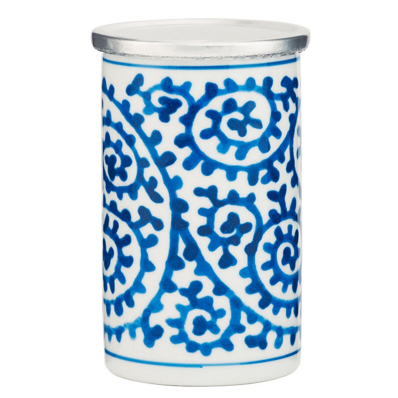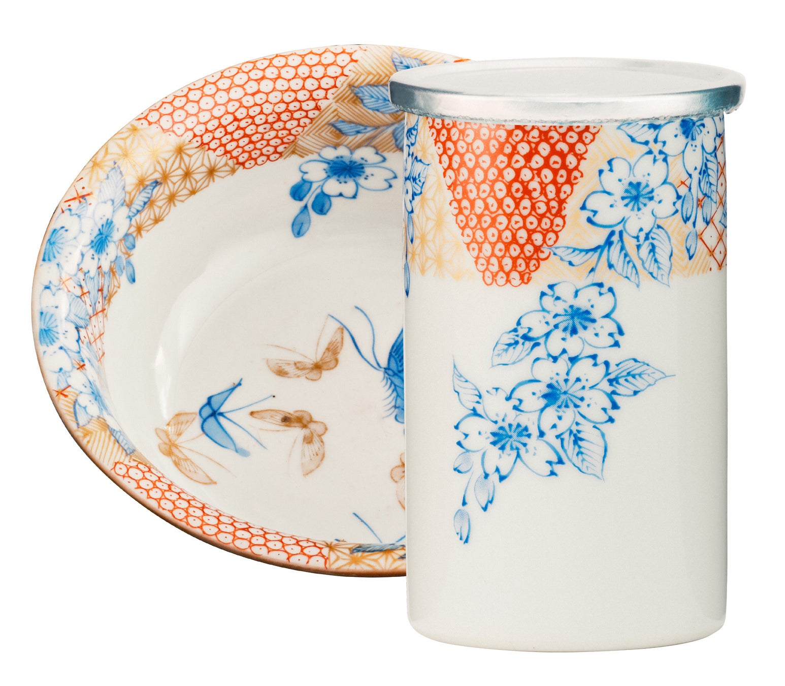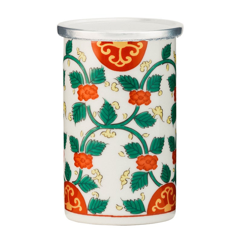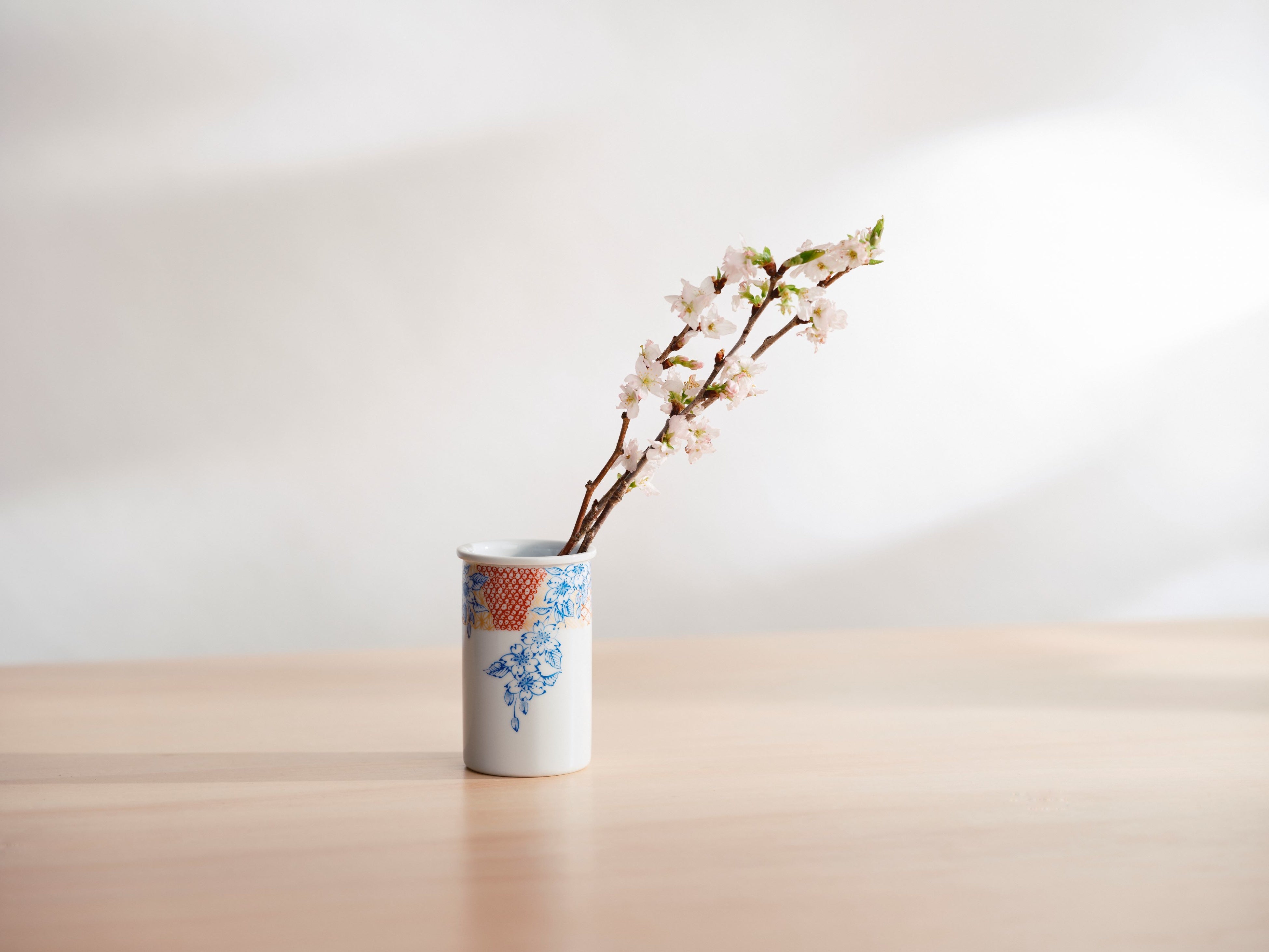 これまで、古伊万里様式「牡丹唐草」、染付「蛸唐草」、鍋島様式「橘」、染付「芙蓉手」、柿右衛門様式「ぼたん」の5種類のラインナップで展開されており、飲んだ後もコップの他、花瓶やペン立て等にも使えることから、発売以来長く愛されている人気商品です。
