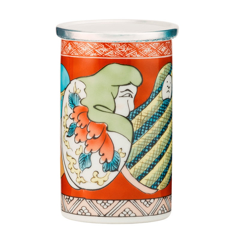 今回、16年ぶりの新柄の企画にあたり、古伊万里酒造の蔵元である前田家が、有田焼の積出港として栄えた伊万里の地で、元々呉服店を営んでいたことから、前田家に代々伝わる器の中から「桜錦」「変わりだるま」を選定し、有田焼の熟練の絵付師の手で円柱型にデザインを起こし制作しました。