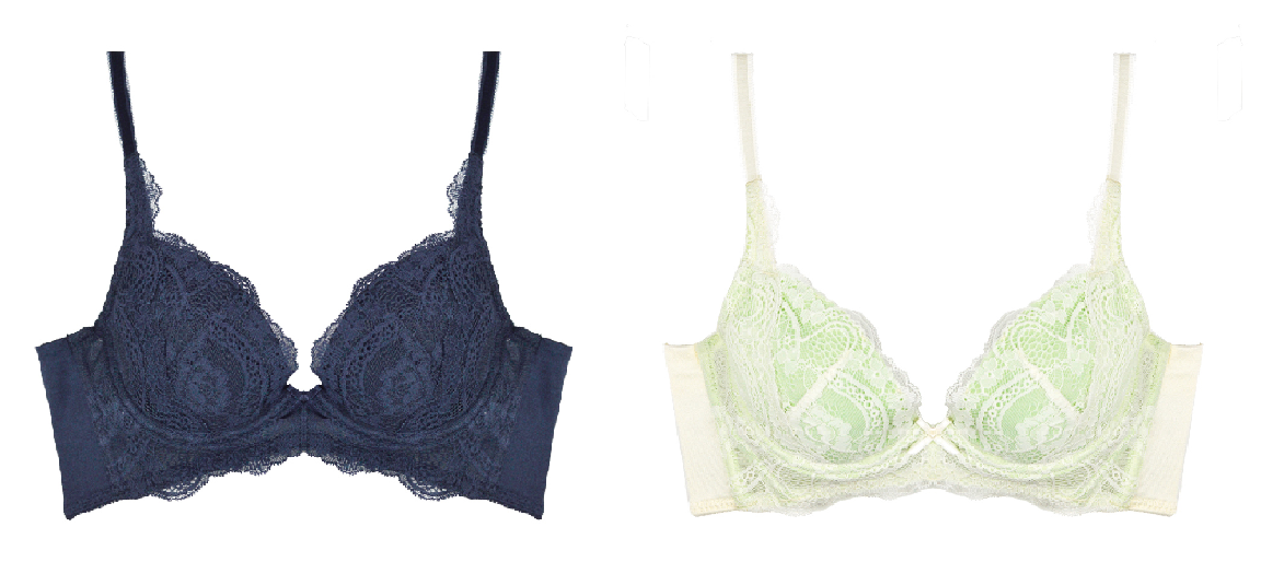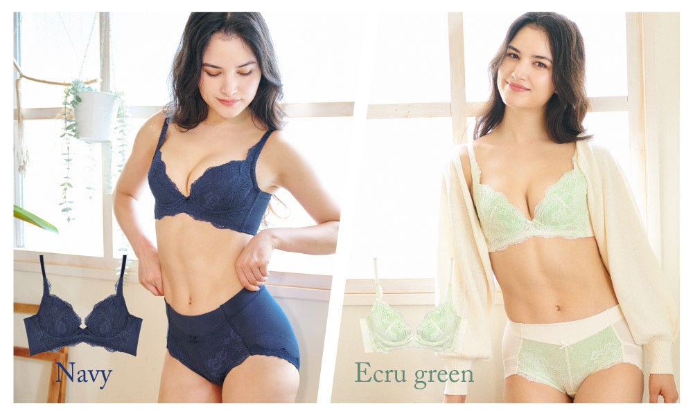 そんなグラモアブラの新色は、エクリュホワイトに爽やかなグリーンを組み合わせた「エクリュグリーン」。朝日を浴びたときの爽快感を表現した可憐なカラーなので、目に入るたびに気持ちまで涼しくなれます。さらに、グラモアブラ誕生当初に展開されていて人気だった「ネイビー」も、復刻色として再登場。ボディラインを視覚的にも引き締めてくれるシックなカラーで、日本人の肌になじみがいい点も魅力です。