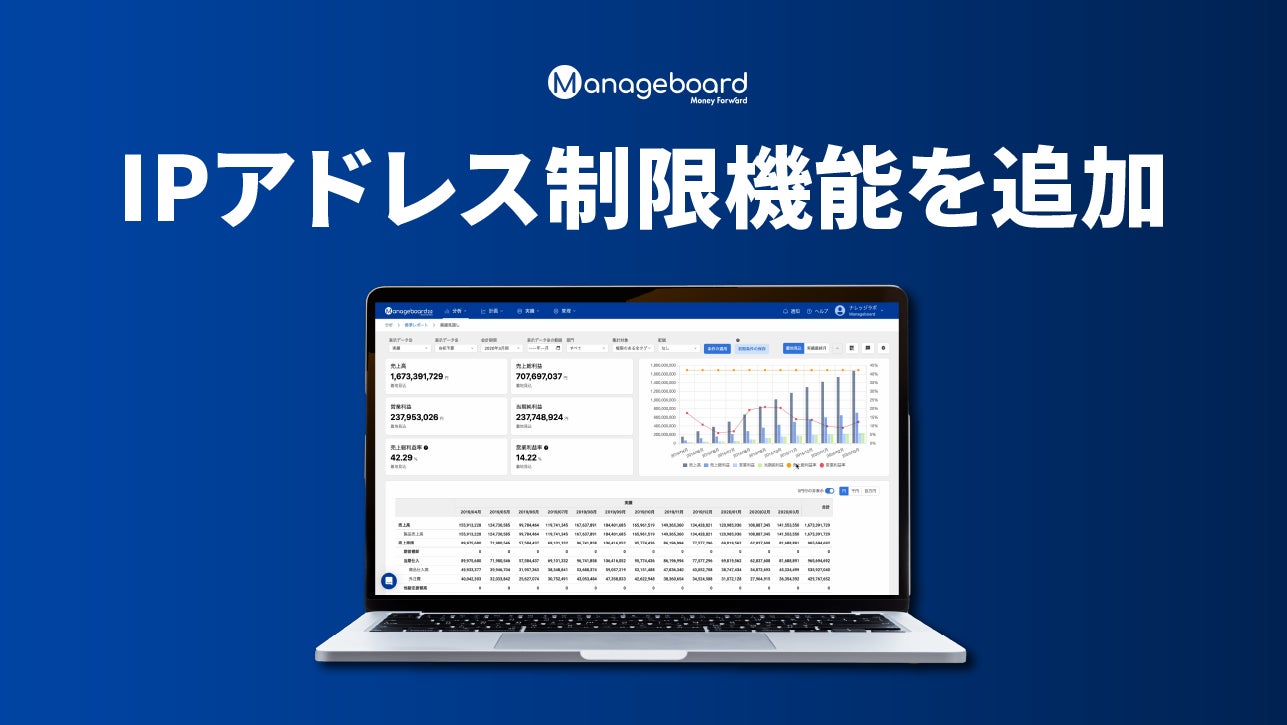 『Manageboard』(https://service.manageboard.jp/)を提供する株式会社ナレッジラボ(代表取締役会長:国見 英嗣 代表取締役CEO:門出 祐介、本社:大阪府大阪市、以下「ナレッジラボ」)は、管理会計プラットフォーム『Manageboard』において、「IPアドレス制限機能」を追加しました。